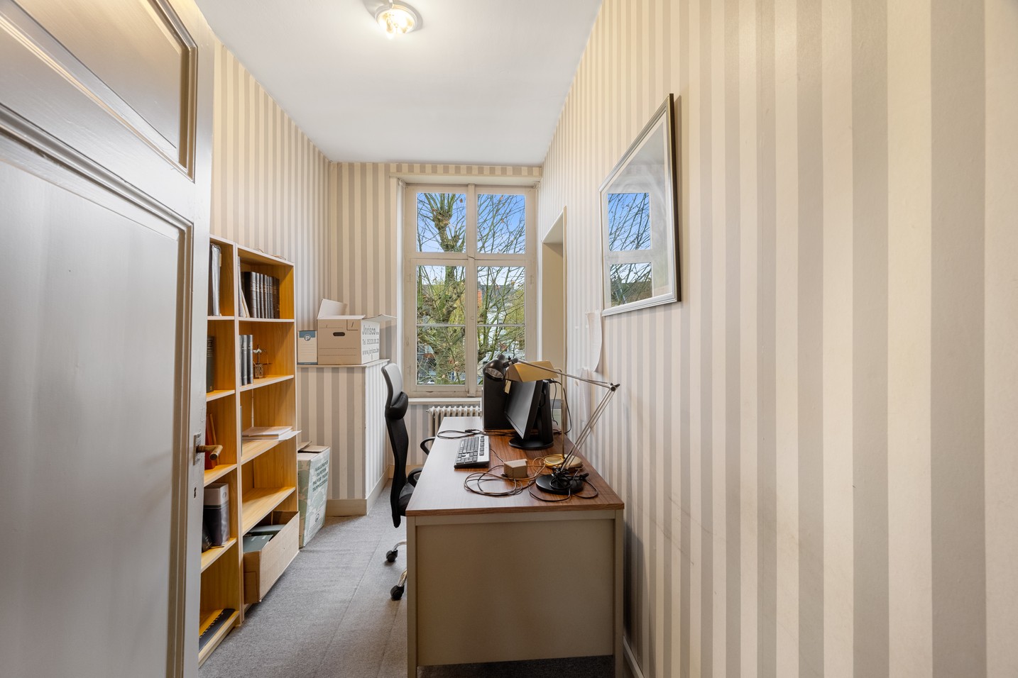 -- HELAAS TE LAAT-- Dit is uw kans om deze vastgoedparel binnen te halen: Uitzonderlijke herenwoning op een grondopp van 213m² met een absolute topligging aan het water! Het is maar enkele minuten wandelen tot het centrum van de stad en uiterst vlot aansluitbaar op openbaar vervoer en de Martelaarslaan. Dit karakterpand welke momenteel dienst doet als kantoor heeft veel te bieden; Via de imposante inkomhal met knappe marmeren vloer krijgen we toegang tot twee grote leefruimten gescheiden door een hoge dubbele deur. Ambachtelijk getrokken moluren en rozetten, originele lambrisering en marmeren sierschouwen. DIt pand heeft het allemaal. Afgesloten van de inkomhal is er een wachtruimte voor de klanten en toegang tot de tuin. Aansluitend een lichtrijke keuken met originele hoekkasten. De indrukwekkende dubbele glazen deuren geven toegang naar een echte wintertuin met Art Nouveau glasramen. Eén niveau lager treffen we er een mooie droge kelder met blauwstenen bevloering welke momenteel fungeert als archief. Via de monumentale trap met authentiek lichtarmatuur bereiken we de eerste en tweede verdieping elk omvattende twee royale kamers en een kleinere. Op de tussenverdieping bevinden zich twee toiletten. Er zijn enorm veel mogelijkheden op het zolderverdiep. Het dak en onderdak zijn reeds vernieuwd in 2018 en voorzien van twee veluxramen. De rust en stilte zijn op te zoeken in de zuidwest gerichte tuin (80m²). Dit pand heeft een effectieve bewoonbare oppervlakte van 256m² , zonder zolder en kelder. De beglazing is deels dubbel en deels enkel. CV op stookolie. EPC: 560 kWh/m2. Alle bezoeken zijn op afspraak en steeds voorzien op zaterdag. BEL snel naar HUISMAKELAAR op 0468/177.398. Doe zeker de virtuele toer: https://my.matterport.com/show/?m=ZrhyWBd7DUU en bekijk gerust het filmpje op: https://youtu.be/hzkhGoAc-5Y